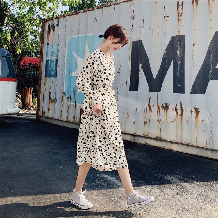 2020年春新作フレンチレトロ優しい風ルージェフローラルスカート気質Vネックウエストスリミングドレスレディース スプリング 春物 花柄 yingd41565292100
