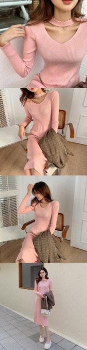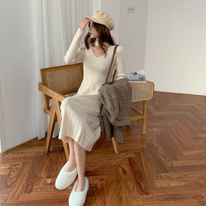 スリムで薄い気質の長袖ボトミングニットドレスの女性の秋と冬の内側にコートが付いた膝の上の長いセータースカート ロング オータム 秋物 ウィンター 冬物 yingd61532948204
