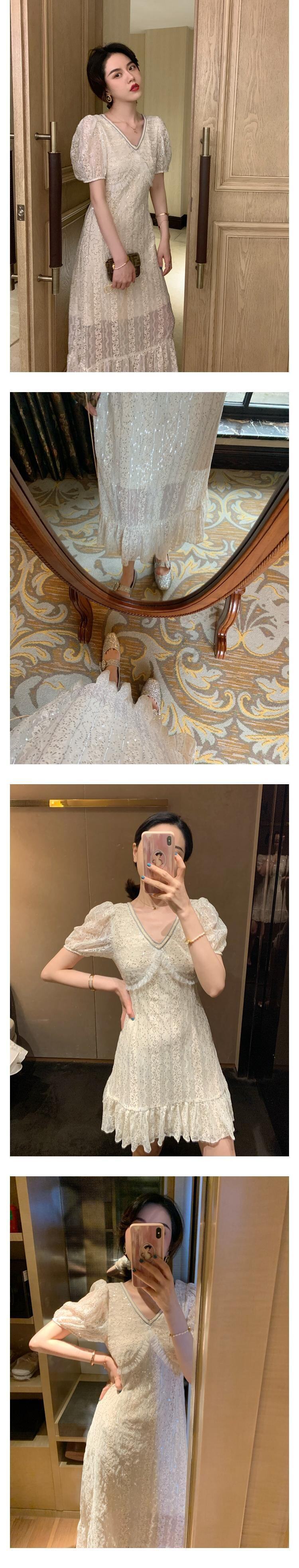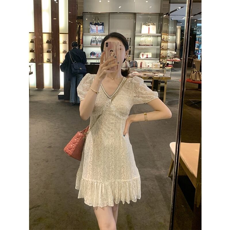 フランスのレトロシックなハイエンドロングスカート気質ライトラグジュアリーレディースレースフィッシュテールスパンコールハイデフィニションドレス女性の夏 サマー 夏物 yingd16241655473