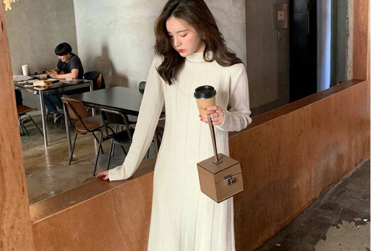 オーバーコート付きインナースカート、ロングセータードレス、膝丈ウエスト、シンナー、ボトミング、ニットワンピース、秋冬女性 オータム 秋物 ウィンター 冬物 yingd68994063533