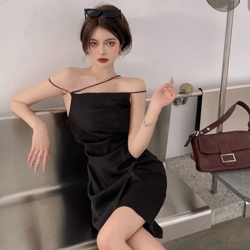 フレンチレトロフォールドデザインニッチサスペンダースカート女性ウエストスリミング気質スモールスカートサスペンダードレス女性 yingd82386700191