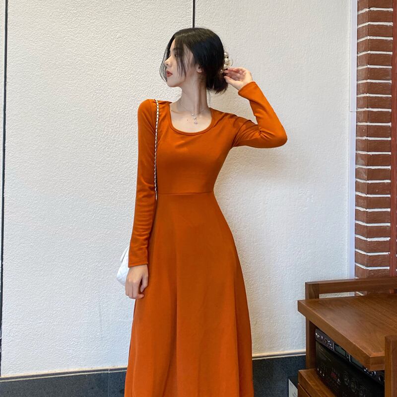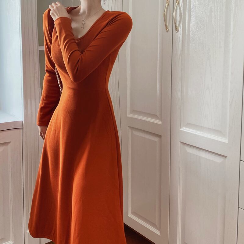 スカート冬マッチングコートフレンチレトロ香港フレーバーウエストスリミングスクエアカラーニットワンピース秋冬女性 オータム 秋物 ウィンター 冬物 スクウェア yingd79702792834