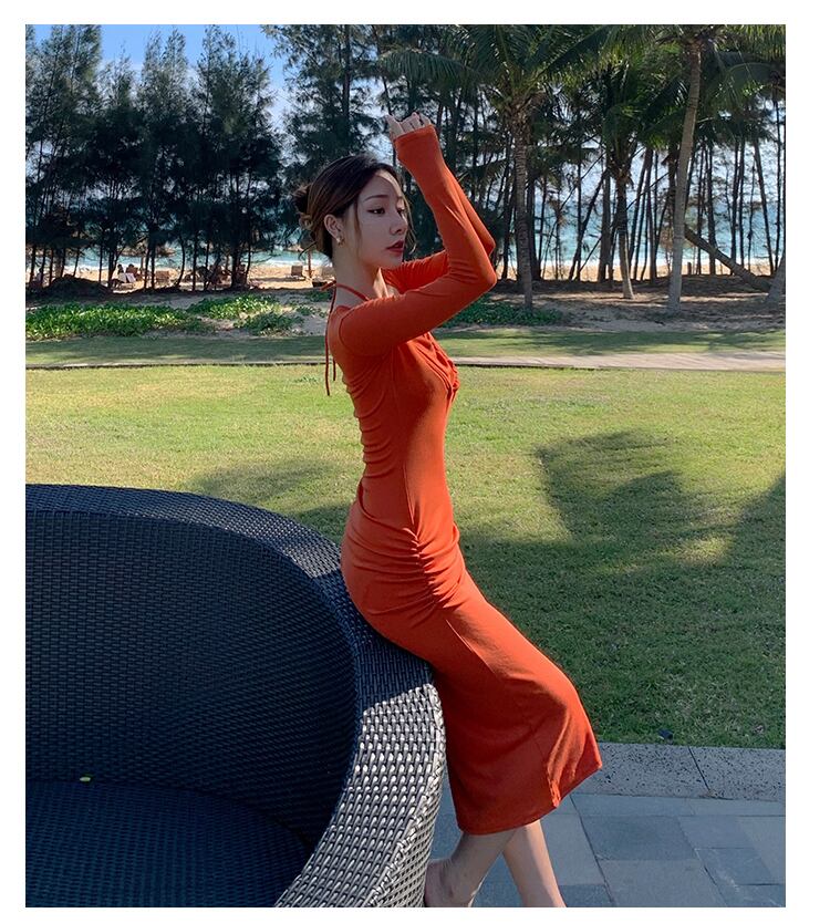 フランスのレトロなキキョウのティーブレイクスカート、ウエストは細い、気質、穏やかな風のデザイン、ニットドレス、女性のロングスカート yingd53003294652