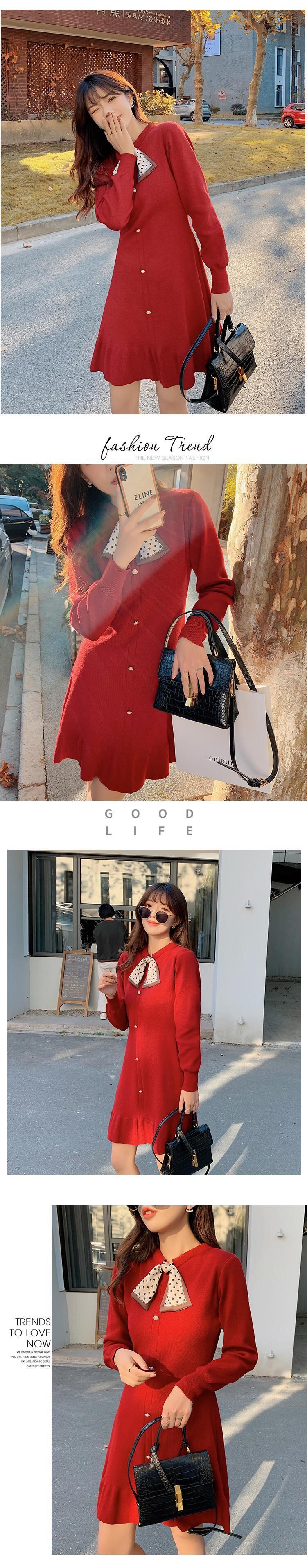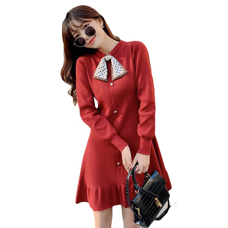 フレンチレトロコート、ウィンタースカート、ベースラインセータースカート、ウエスト、薄手の気質、ニットワンピース、秋冬女性 オータム 秋物 冬物 Aライン yingd3753355661