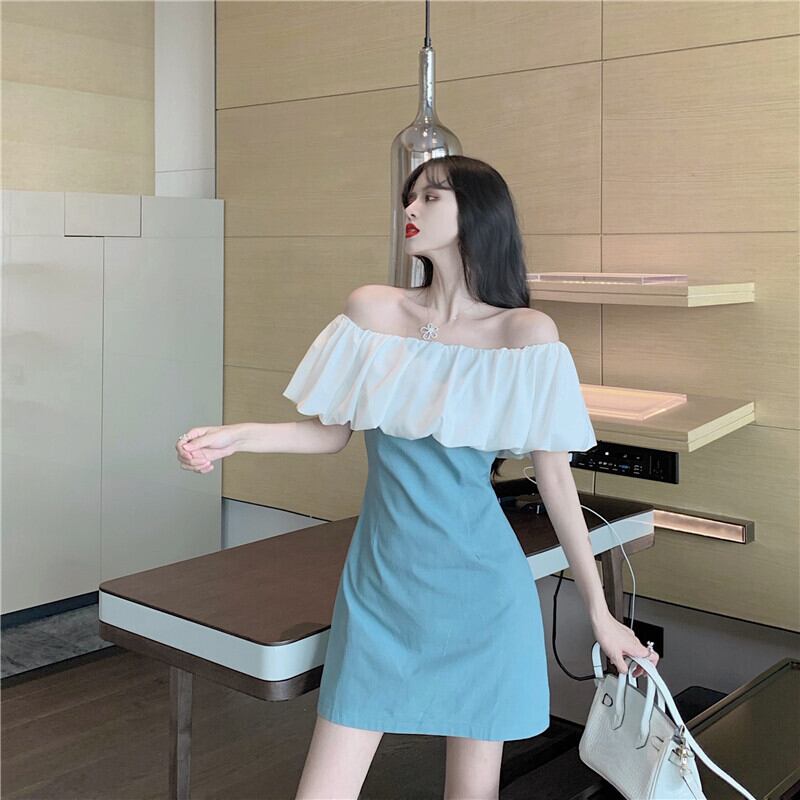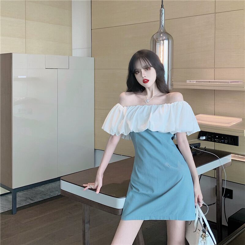軽く調理されたスタイルのワンショルダードレス2020年夏のフランスのレトロなウエストと薄い気質の女神ファンAラインスカート サマー 夏物 yingd25900671212