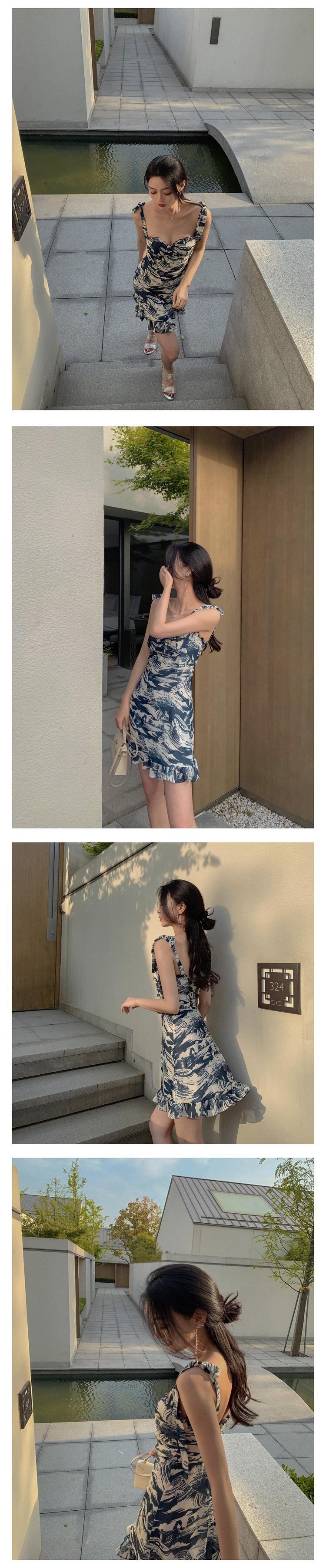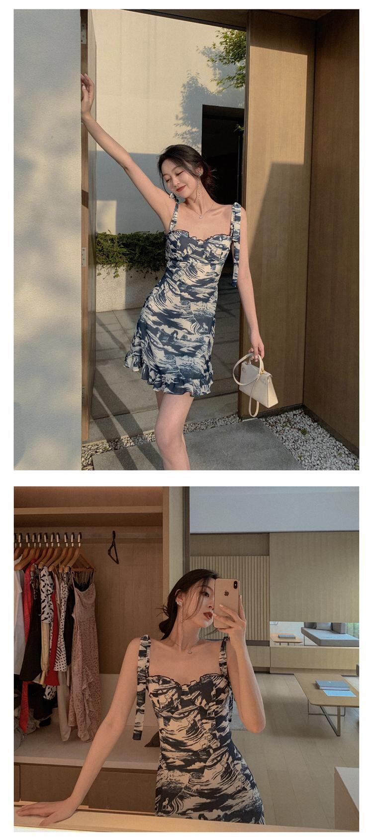スリングスカート女性2021年夏新しいフランスのレトロなニッチウエストウエストは薄い気質のショートスカートプリントスリングドレスでした サマー 夏物 yingd83881401621