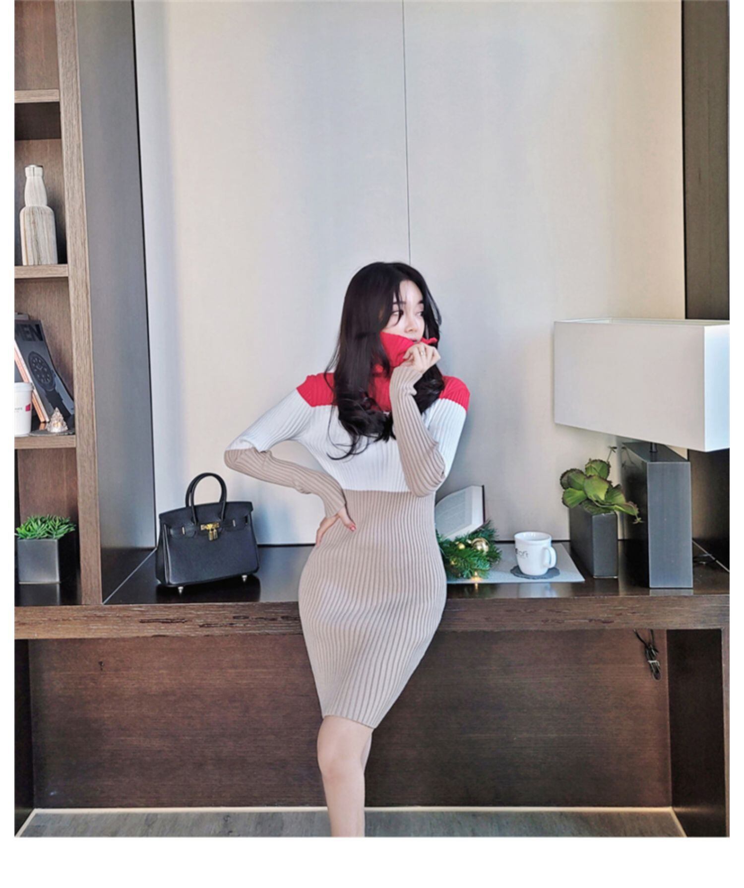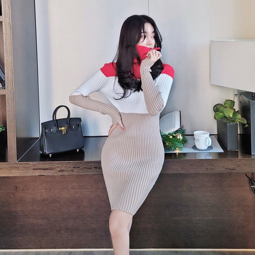 フレンチレトロスカート冬コートセータードレスセクシータイトフィットヒップボトミングニットドレス女性秋冬 オータム 秋物 ウィンター 冬物 yingd30470934834