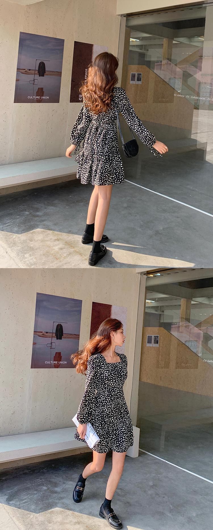 フランスのレトロなヘップバーンスタイルの花柄のショートスカート2021年春の新しいデザインセンススクエアカラー花柄のドレス女性 スプリング 春物 スクウェア yingd72188745212