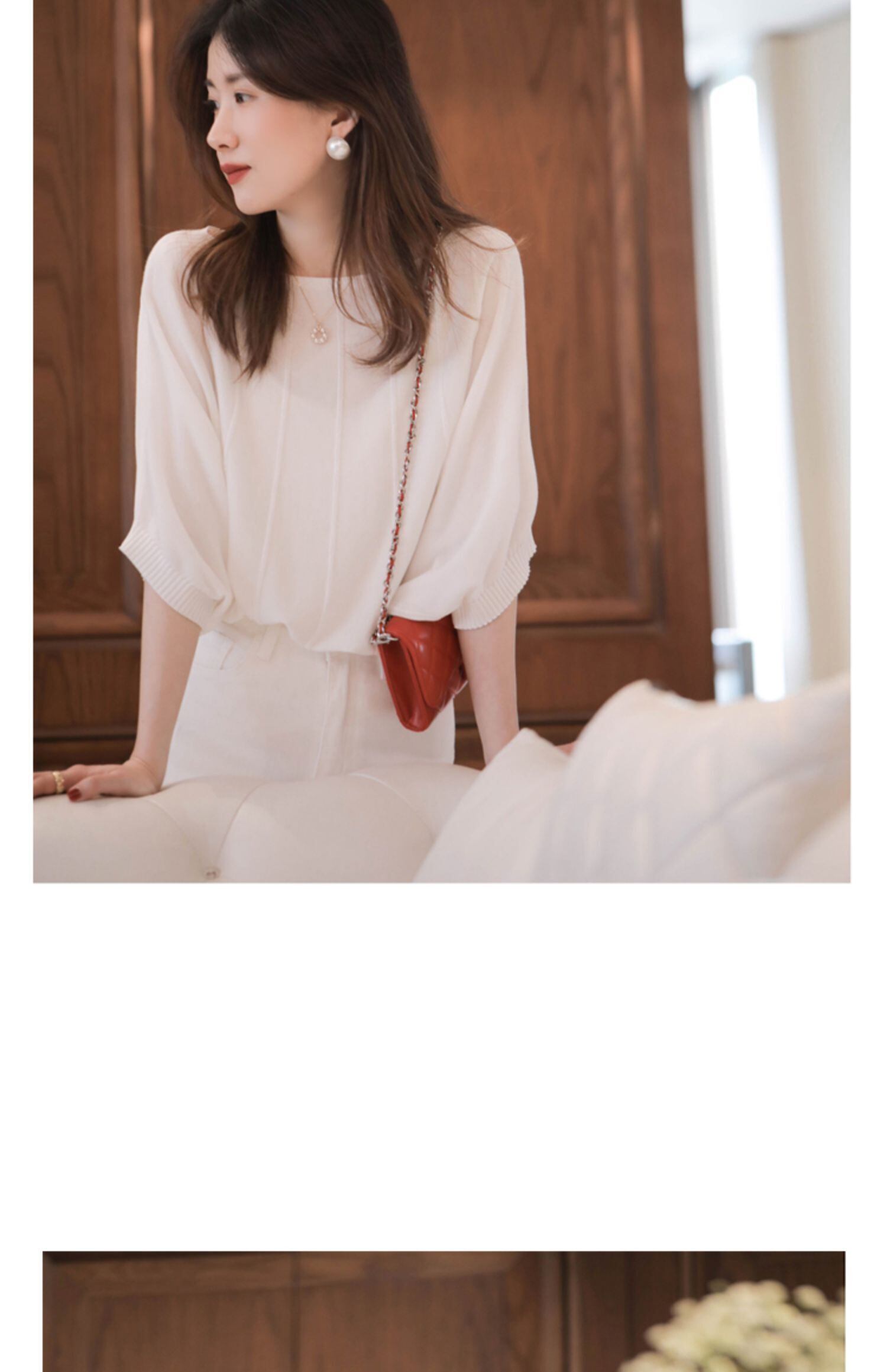 フランスのレトロな軽い成熟したスタイルの半袖ブラウス女性の夏の緩くて薄い気質の女神ファンワードカラーニットプルオーバー女性 サマー 夏物 yingd98966692199