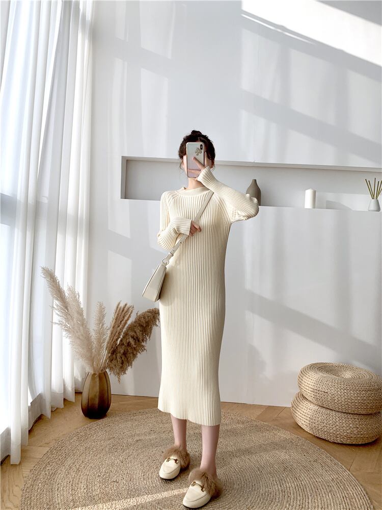 フレンチレトロミドル丈セータードレス膝上オーバーコート冬スカート長袖ニットドレス女性秋冬 ロング オータム 秋物 ウィンター 冬物 yingd30822030315