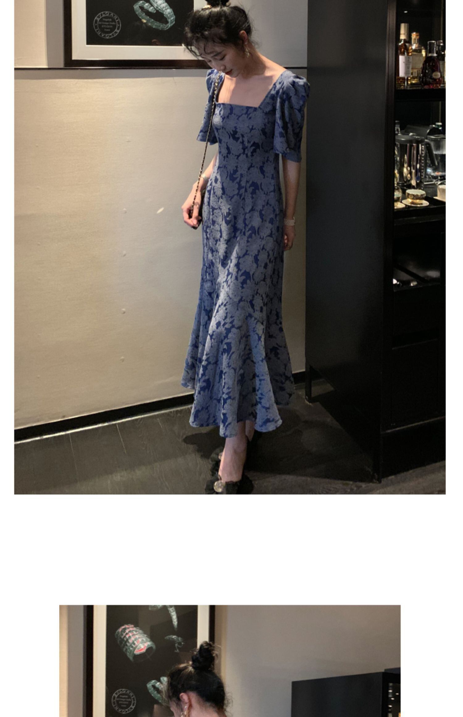 フランスのレトロなティーブレイク、初恋のロングスカート、ウエストが細かった、気質、ロイヤルシスター、軽く調理されたスタイル、高級フローラルドレス、夏 サマー 夏物 花柄 yingd90677359971