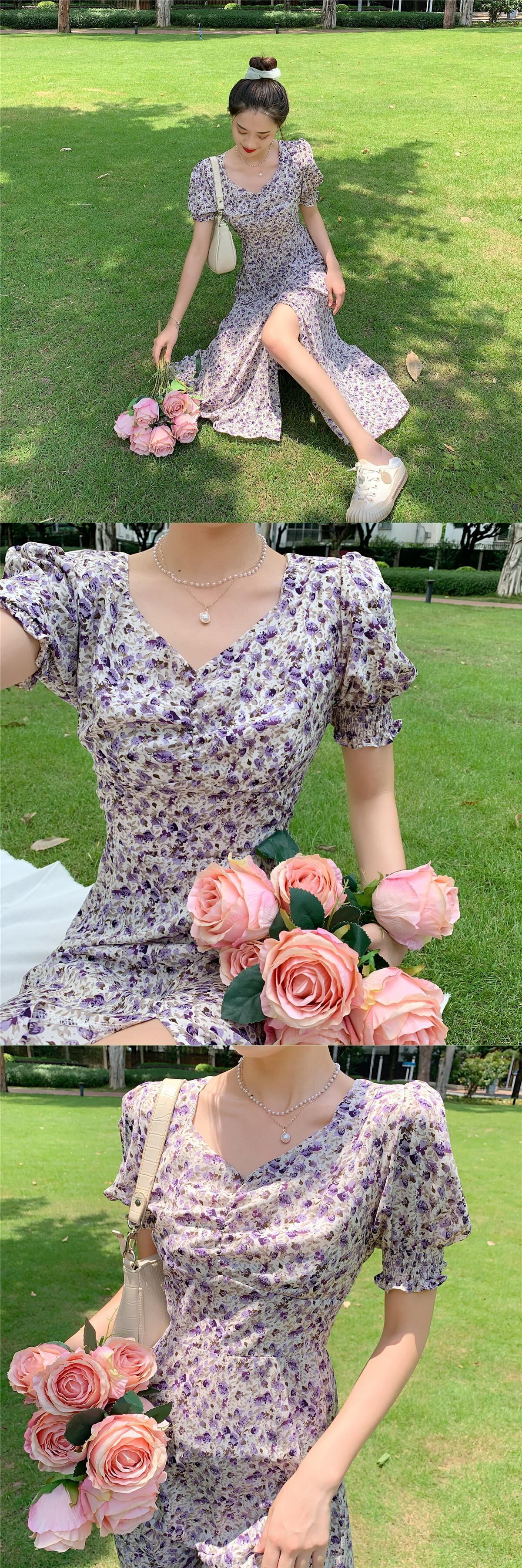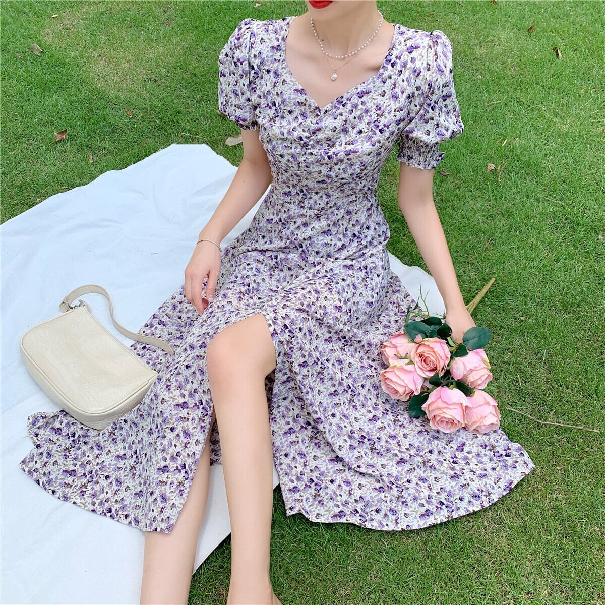 フランスのニッチなキキョウ初恋の甘い妖精のスカートヘップバーンスタイルは甘くて塩辛いセクシーなスプリットフローラルドレスの女性になることができます 大人ガーリー スウィート キュート カジュアル 花柄 yingd17672377473