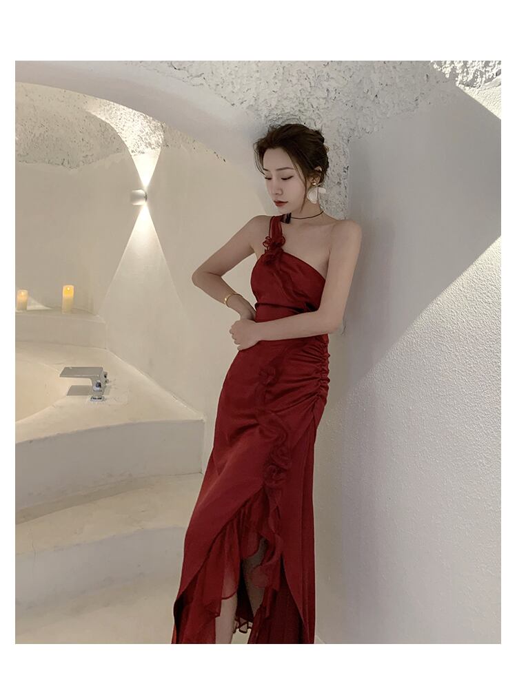 フランスのレトロなデザイン、ニッチ、軽いおなじみのスタイル、軽い贅沢、女性の高級感のあるサテンのスリングドレス女性の夏 サマー 夏物 yingd83419958384