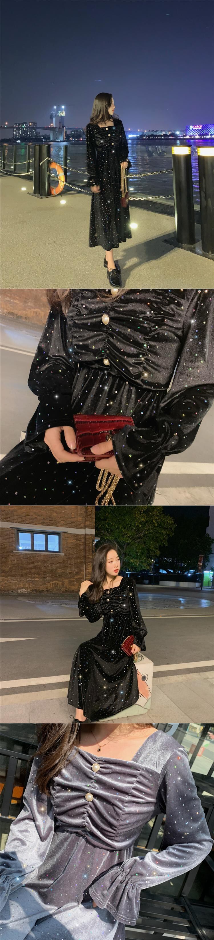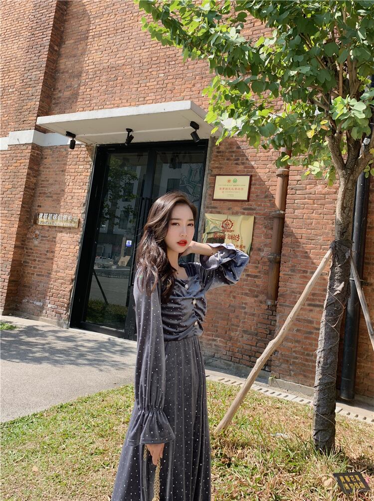 フレンチレトロヘップバーンスタイルドレスロングスカートウエスタンスタイルネットレッド気質ウエストシンベルベットドレス女性秋冬 オータム 秋物 ウィンター 冬物 yingd27197394696
