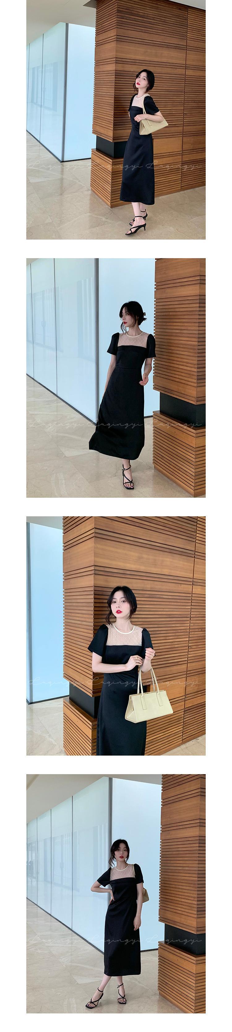 フランスのレトロな高品質の初恋ロングスカート女性夏優しくて軽い豪華な高精細メッシュステッチ妖精ドレス薄片 サマー 夏物 yingd13545384503