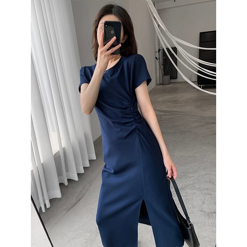 フランスのレトロシックなデザインのスカートライト成熟した風のウエストスリミングセクシーなスプリットハイセンスドレス女性の夏 サマー 夏物 yingd99630071151
