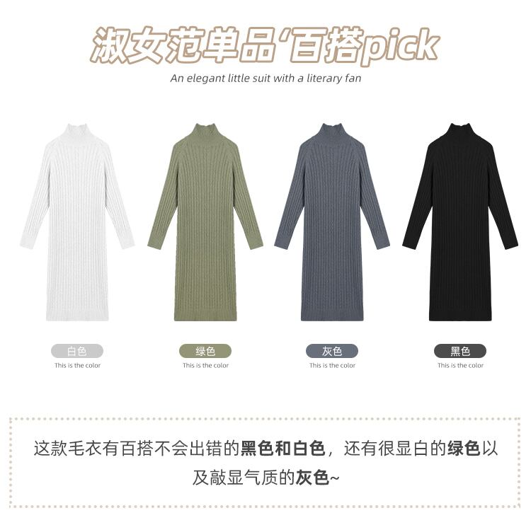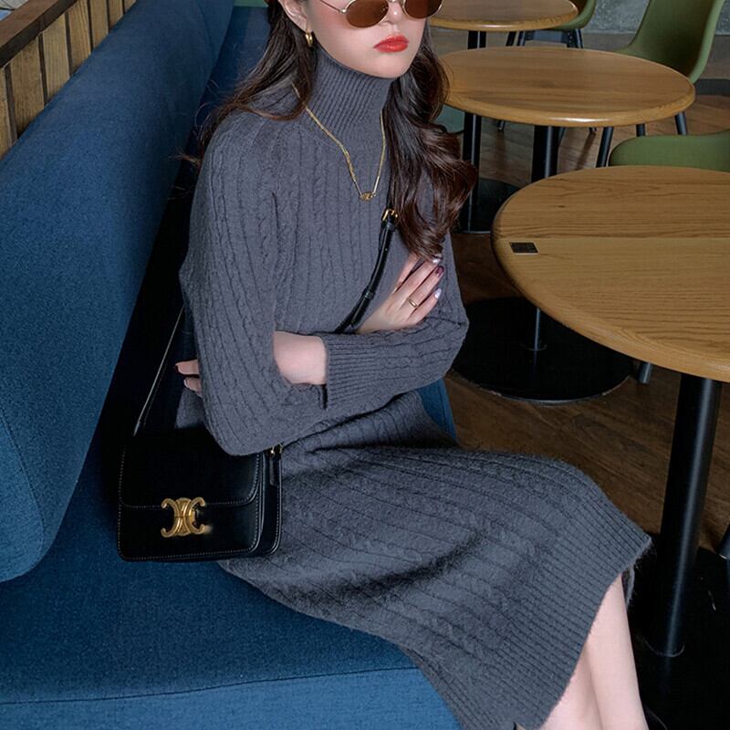 ロングセータースカート、ニーウエストウエスト、細い気質、女神ファンハイネックインナースリムニットワンピース秋冬女性 オータム 秋物 ウィンター 冬物 yingd87074840169