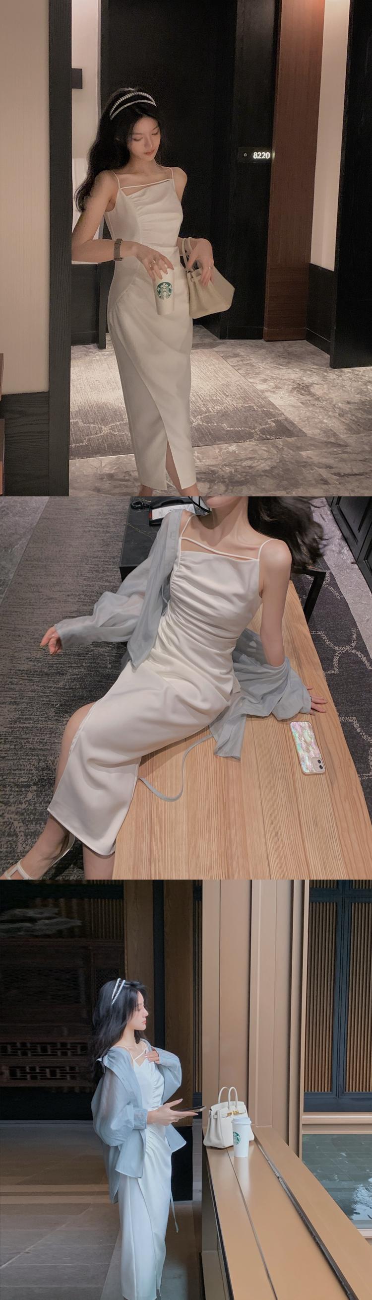 フランスのレトロなセクシーなサスペンダードレス女性2021年夏新しいハイエンドデザインセンスニッチウェアサスペンダースカート サマー 夏物 yingd12671799676