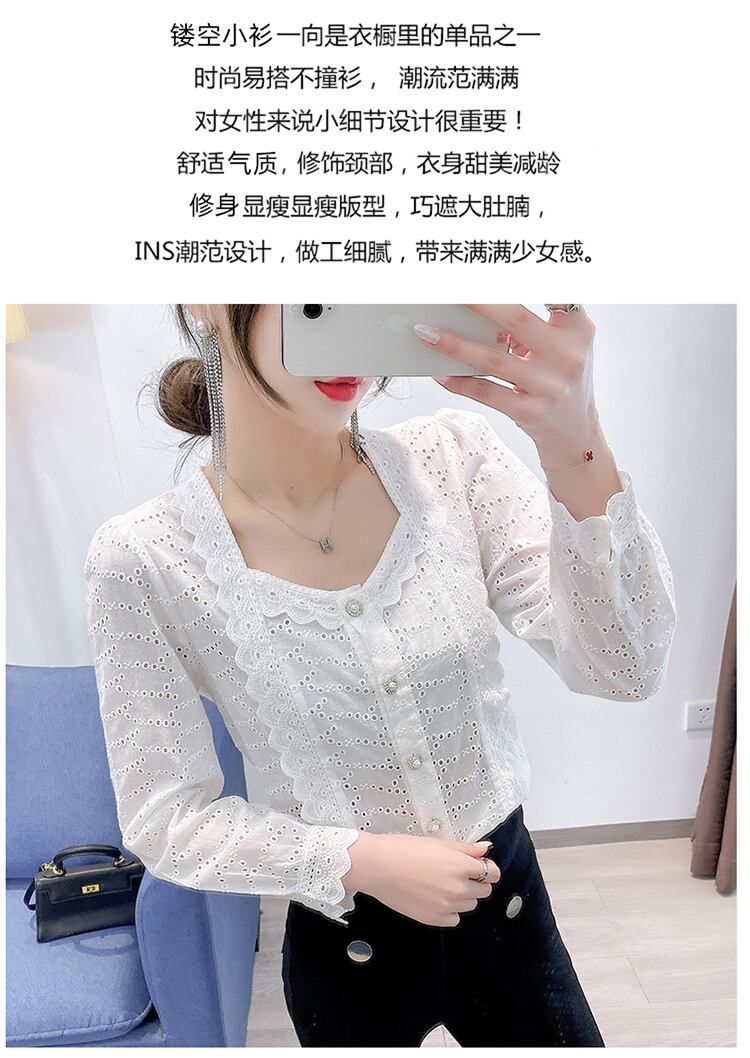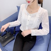 2021年春の新作フレンチレトロ優しいスタイルウエスタンスタイルスモールシャツ、スクエアネック長袖シャツ、女性デザインセンスニッチ ロング スプリング 春物 スクウェア yingd94297596955