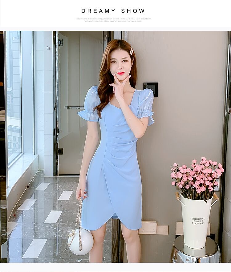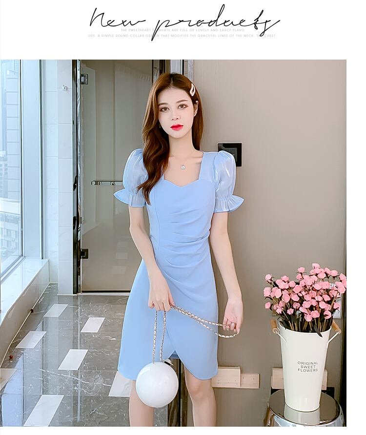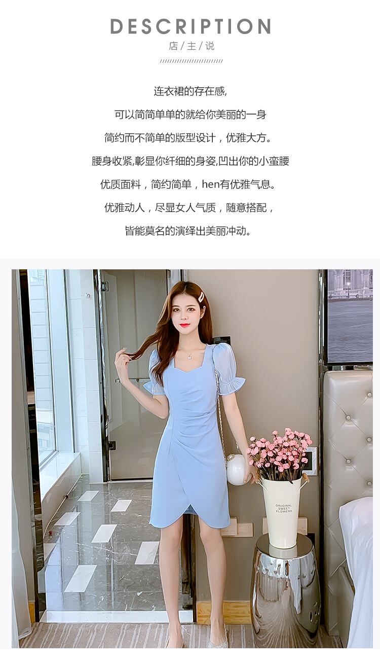 フランスのレトロシックなデザインニッチ気質小さなスカートウエストスリミングライトラグジュアリーレディーススクエアカラードレス女性 スクウェア yingd25053699781