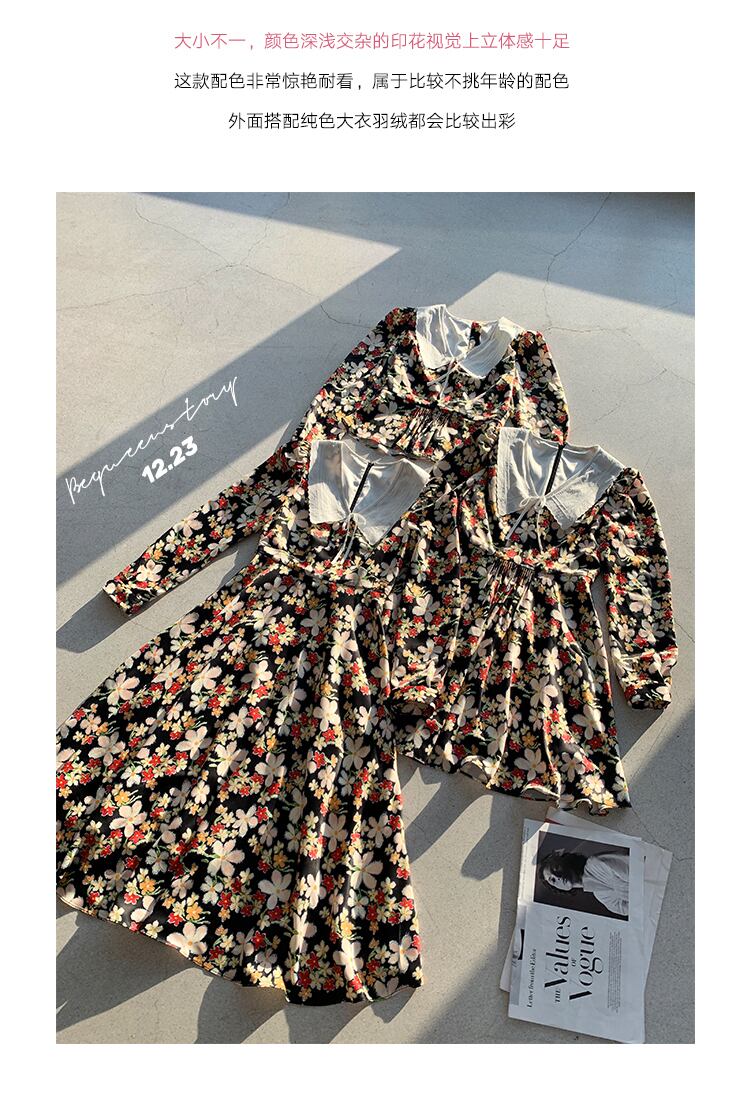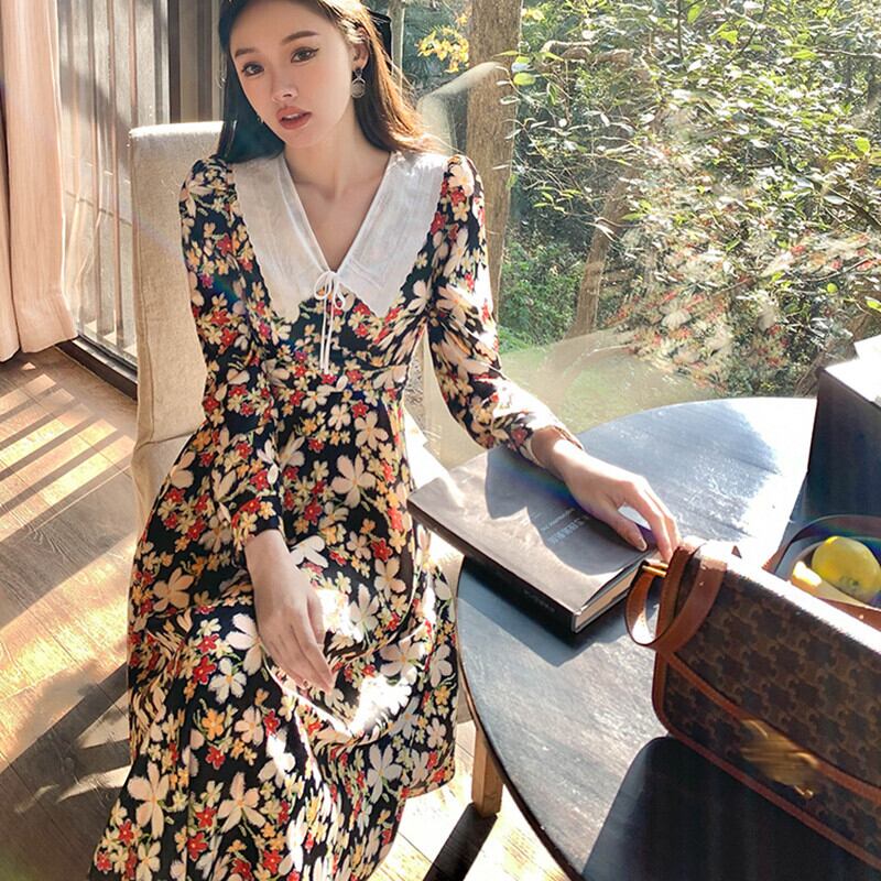 2021年春の新しいフランスのレトロなヘップバーン冷風腰の高い感覚と薄い気質の花柄のフローラルドレスの女性 スプリング 春物 yingd80236340696
