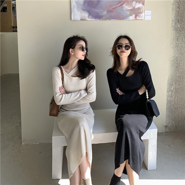 フランスのレトロなロングセータースカート膝上デザインニットドレスの内側のニッチな穏やかな風の感覚秋と冬の女性 オータム 秋物 ウィンター 冬物 yingd70605848687
