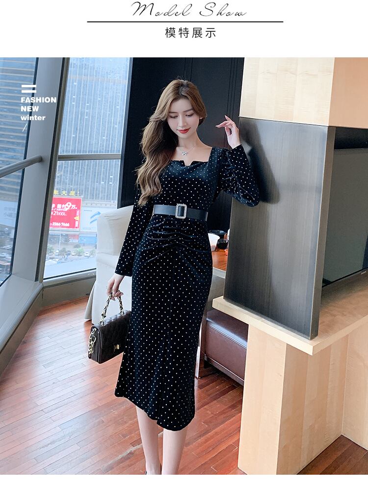 フランスのレトロなヘップバーンスタイルのウエストは、より薄い気質の女性の年次会議ドレス女性のロングスカートベルベットドレス女性の秋と冬でした オータム 秋物 ウィンター 冬物 yingd45696506205