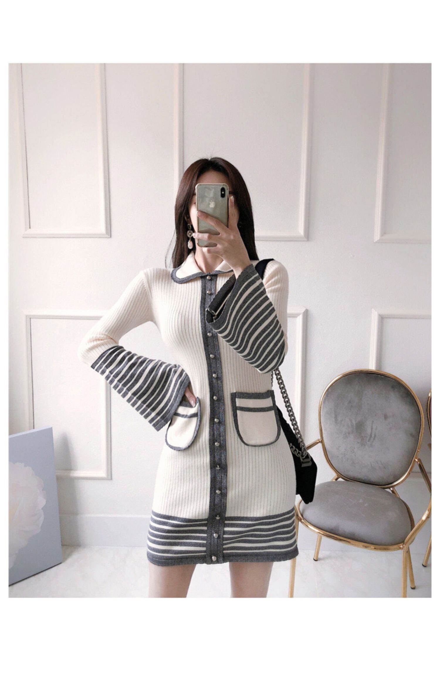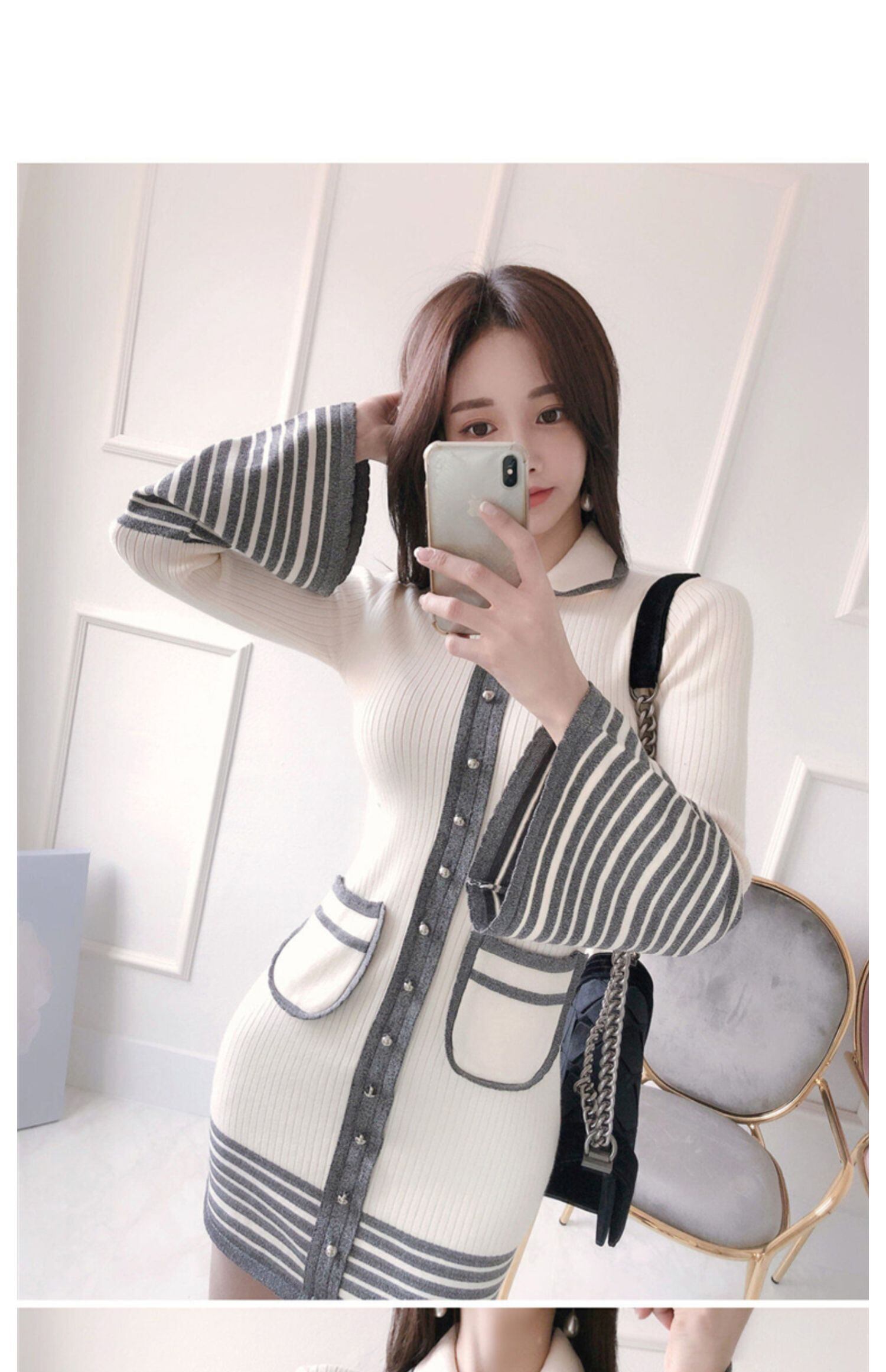 スカート冬着コートセータースカートウエストウエストは薄手の気質タイトフィットヒップストライプニットワンピース秋冬 ウィンター 冬物 yingd99502167905