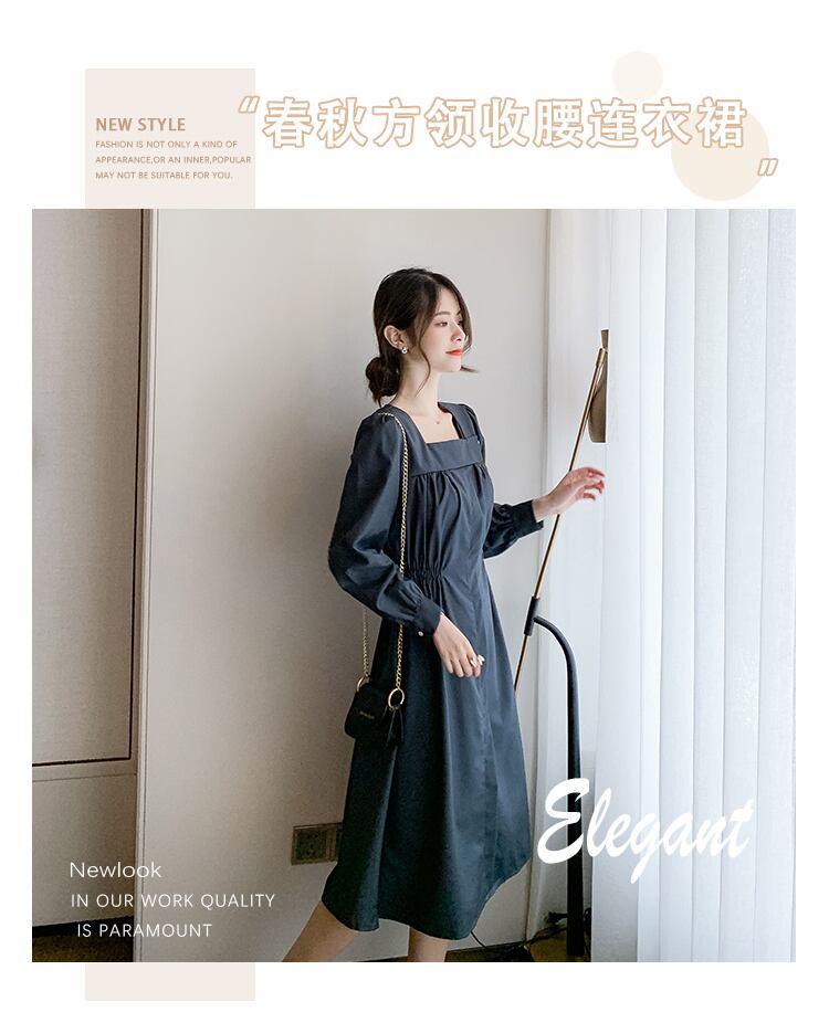 フランスのレトロなニッチPlatycodongrandiflorumスカートウエストは細く、気質デザインスカートライト成熟した風スクエアカラードレス女性秋 オータム 秋物 スクウェア yingd45557484624