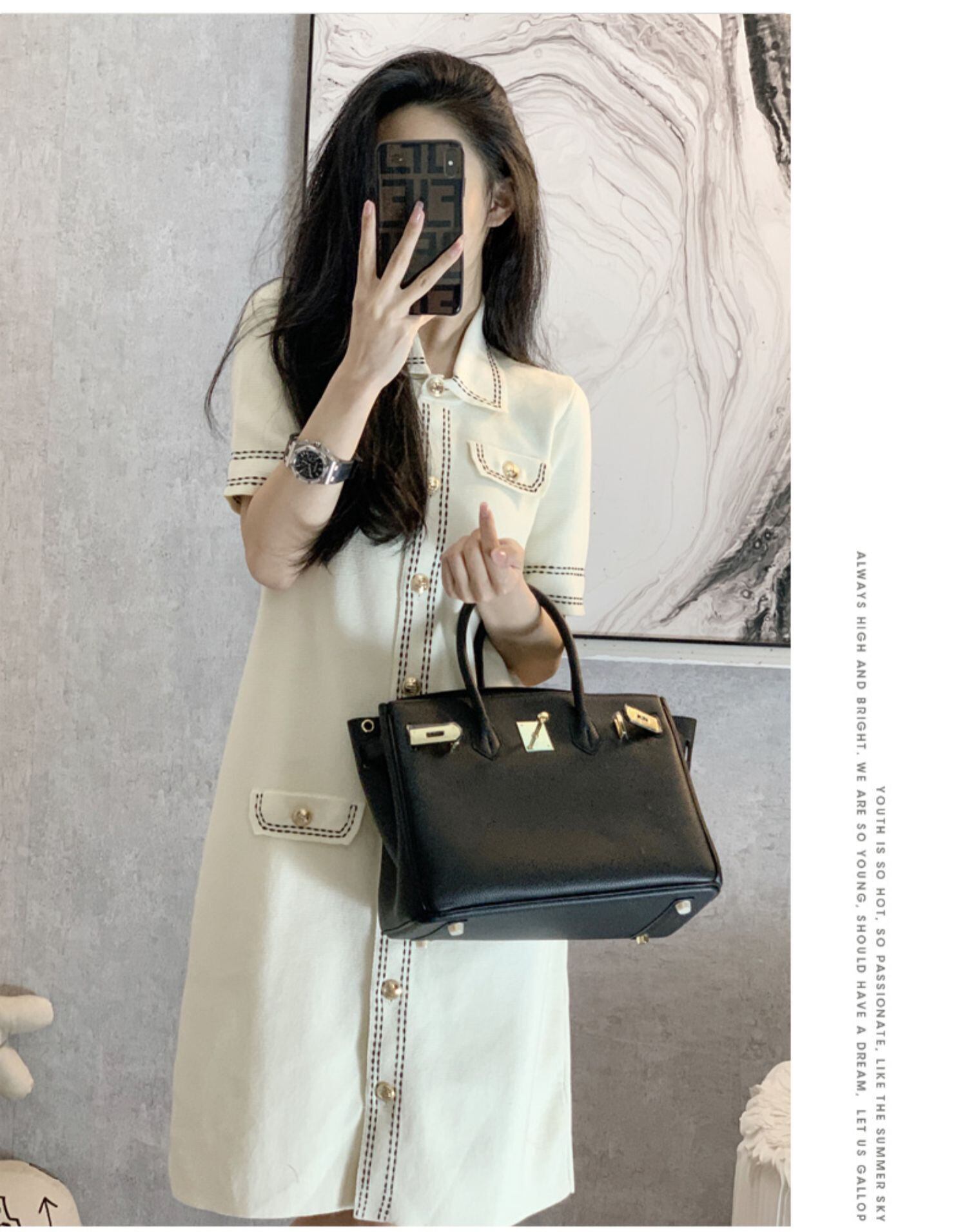 フランスのレトロな優しいティーブレイクキキョウスカートウエストはより薄いデザインのハイエンドポロカラーニットドレス夏 サマー 夏物 yingd1235010566