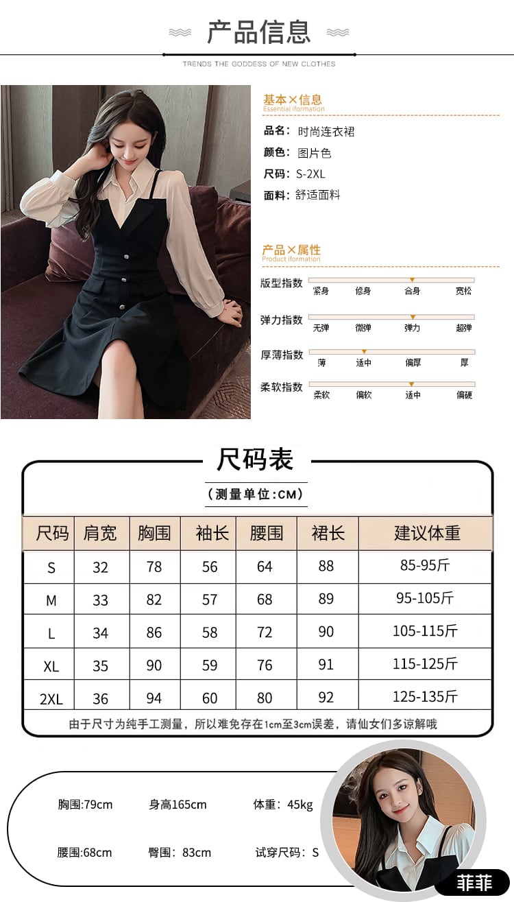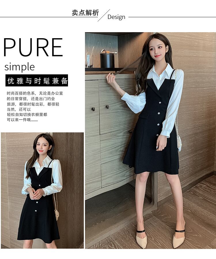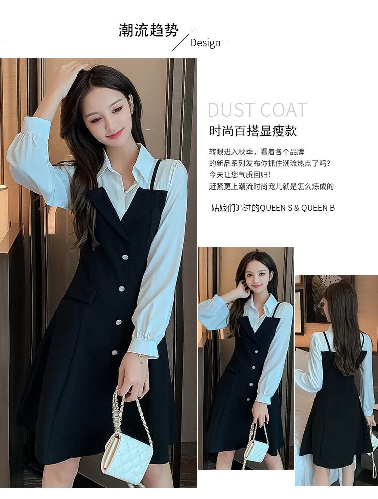 ドレス2020新しい秋フレンチスタイルライトラグジュアリーデザインスカートライトクックドウィンドフェイクツーピースミドル丈シャツスカート オータム 秋物 yingd15825257730