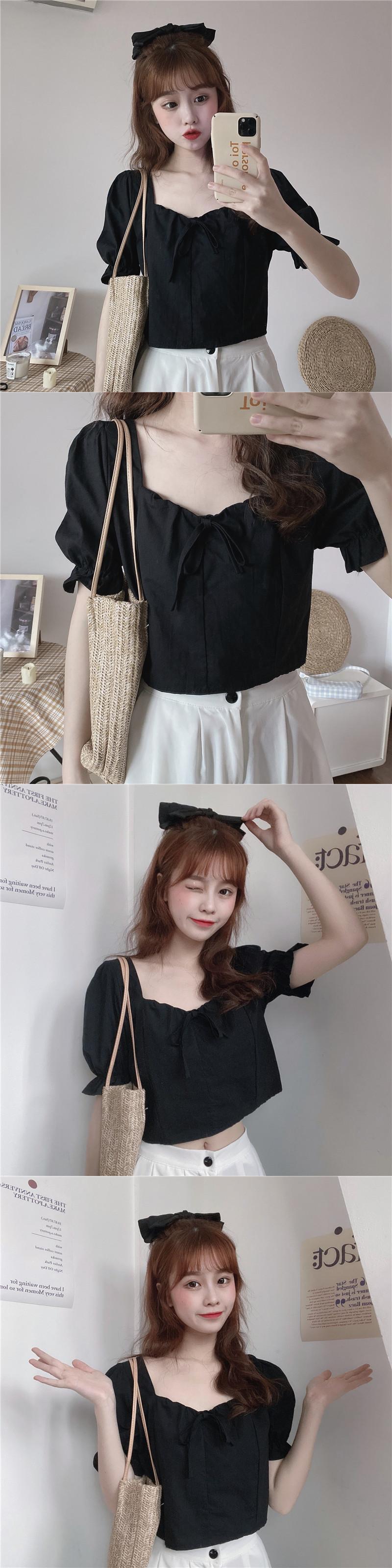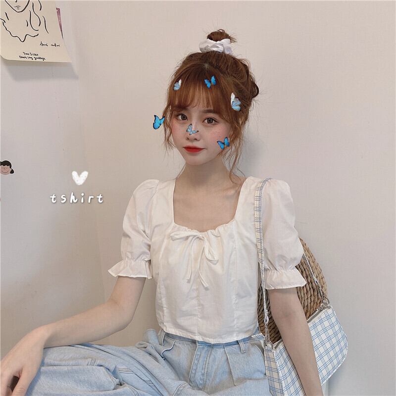 2020年夏の新しいスタイルのスモールシャツ、パフスリーブスクエアカラーショートトップ女性スリムスリム半袖シャツ ハーフスリーブ サマー 夏物 スクウェア yingd64997361868