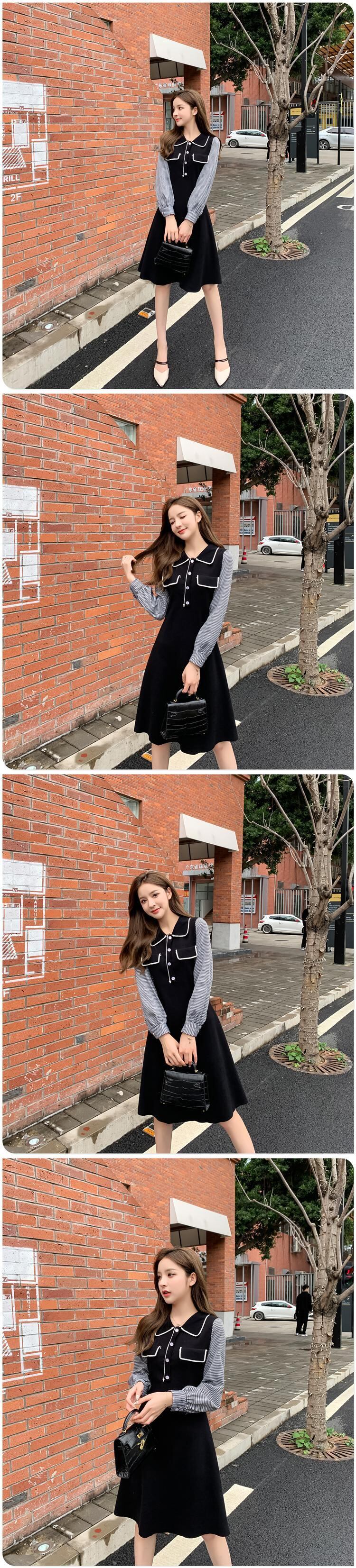 フランスのレトロなヘップバーンスタイルの小さな黒いドレスのウエストは薄く、軽い豪華な女性の長袖ニットドレスの女性の秋と冬でした ロング ブラック オータム 秋物 ウィンター 冬物 yingd56795245971