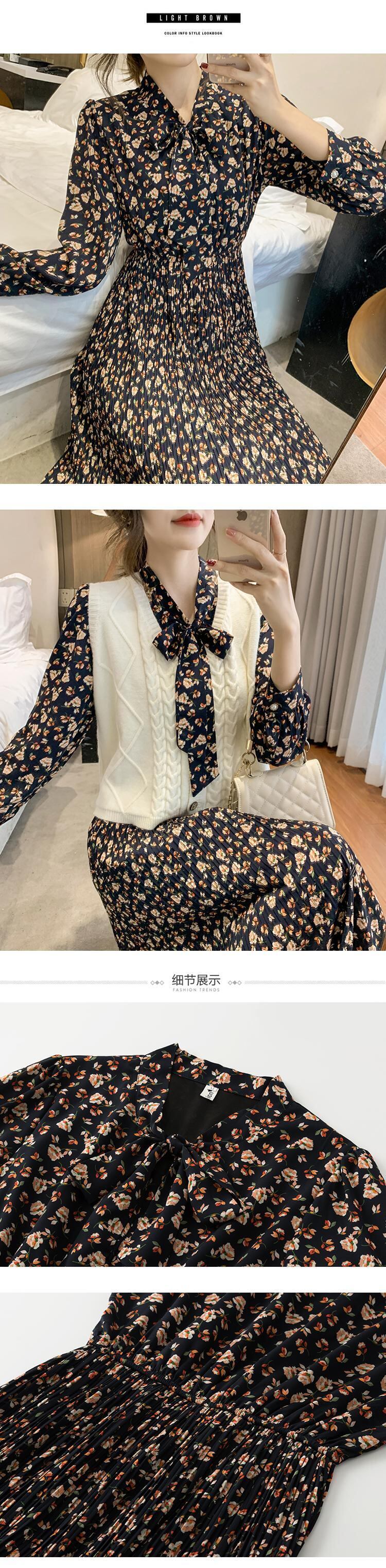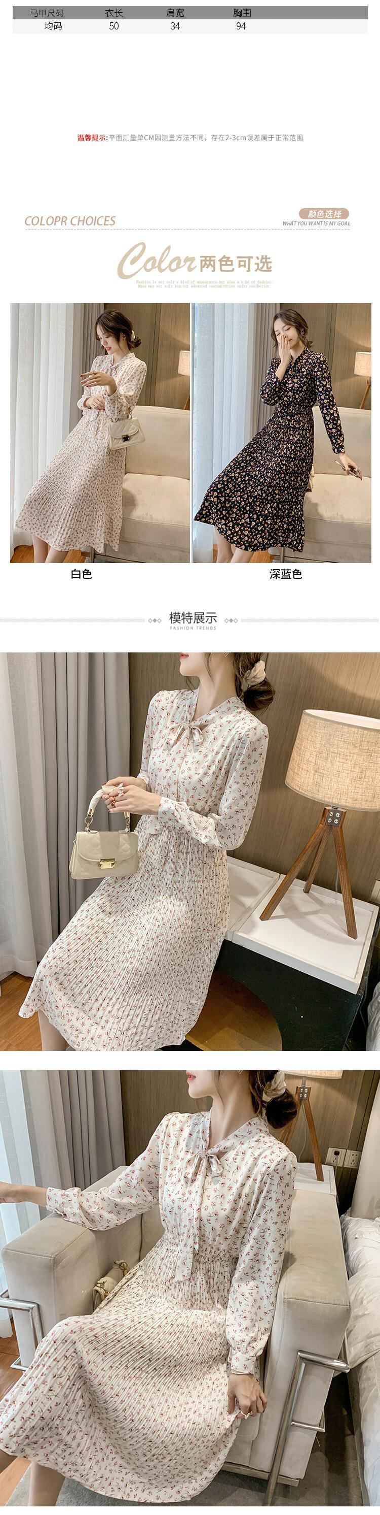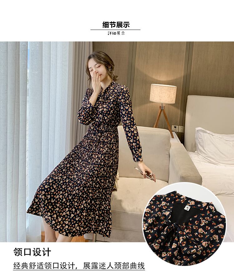 2021年春の新作レディースフレンチレトロコールドスタイルハイエンド長袖シフォンプリーツフローラルドレスレディース ロング スプリング 春物 花柄 yingd42834594059