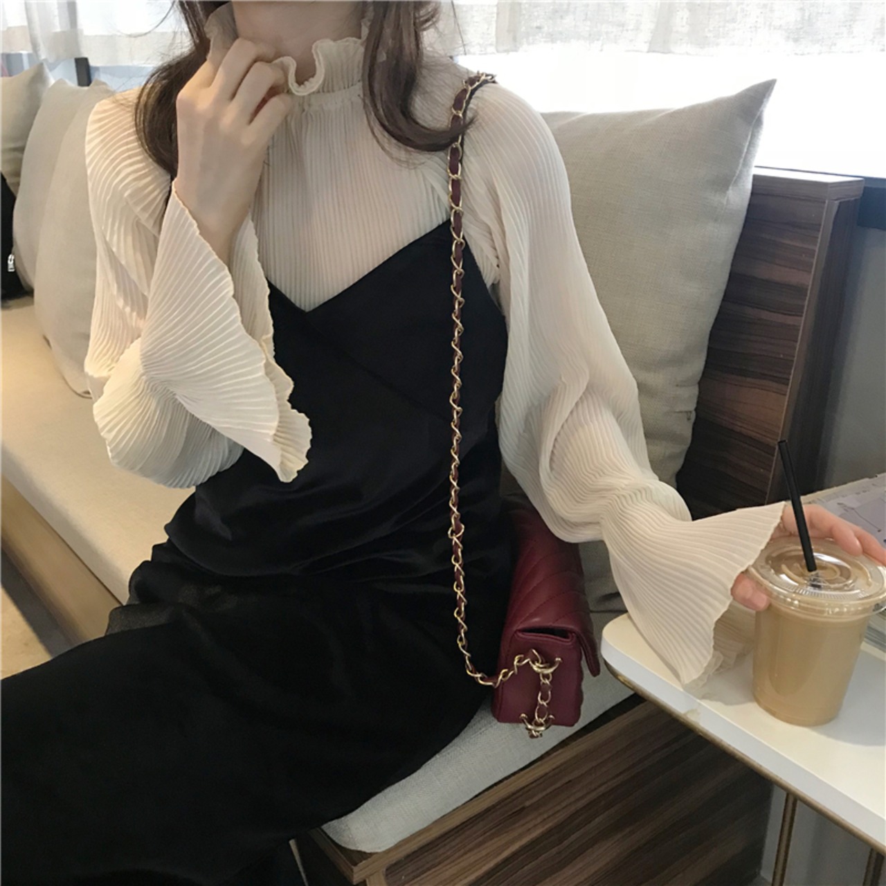 色:シフォンシャツ+サスペンダースカート