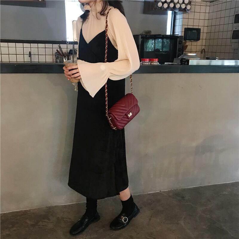2020年秋新作フレンチレトロヘップバーンライトマチュアスタイルドレス女性気質シフォンシャツサスペンダースカートツーピーススーツ オータム 秋物 yingd31946828487