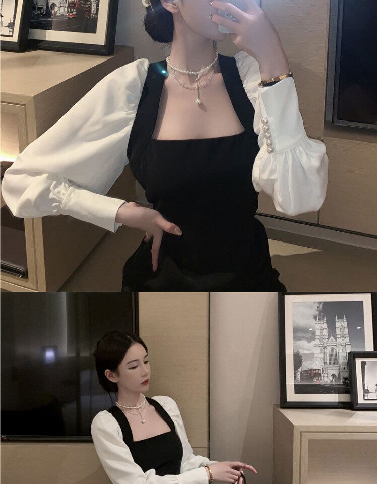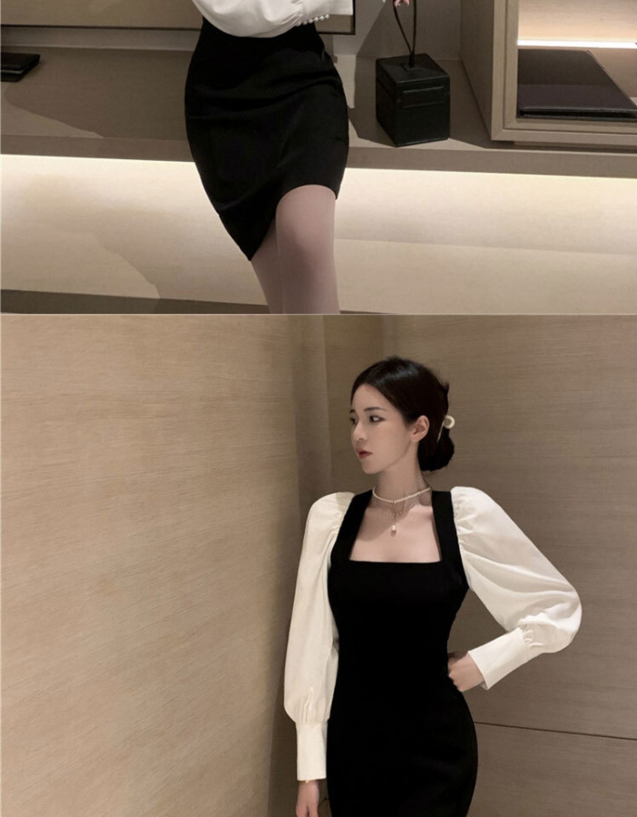 フランスのレトロなヘップバーンスタイルの小さな黒いドレス、軽い贅沢、女性の気質、女神ファン、ウエストの高級感スクエアカラードレス女性 ブラック スクウェア yingd58813840176