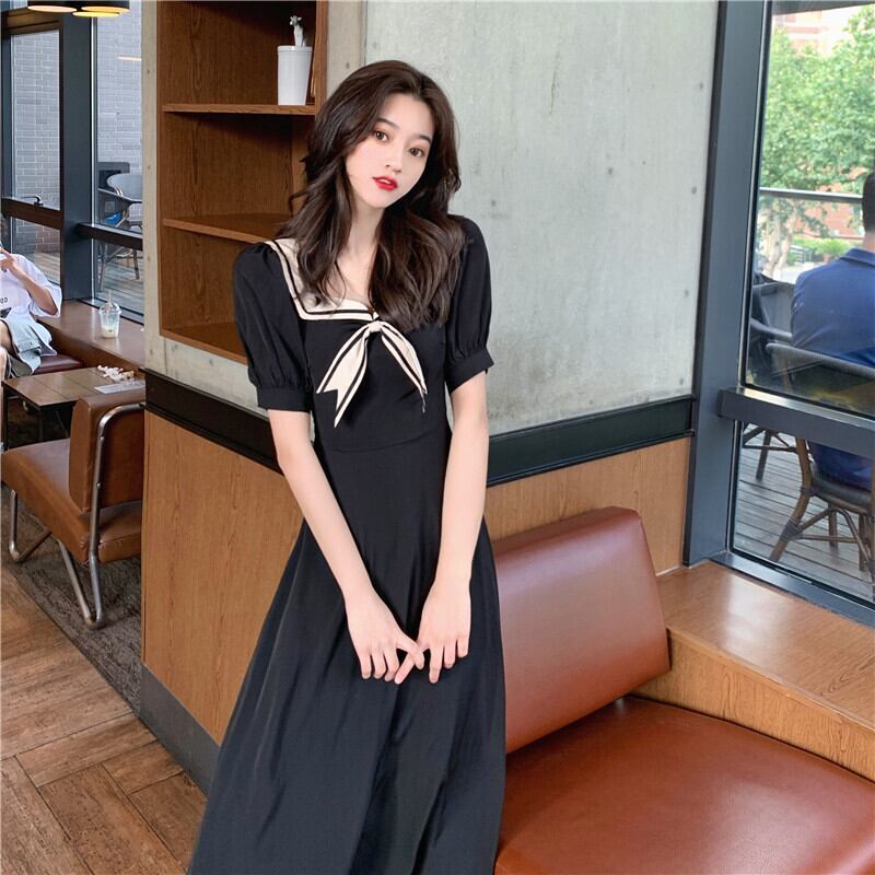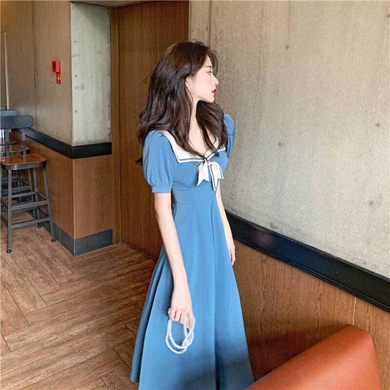 フランスのレトロなデザインのニッチなロングスカートは薄くて気質の高い女神ファン青州スタイルのネイビーカラードレス女性 yingd61985106582