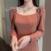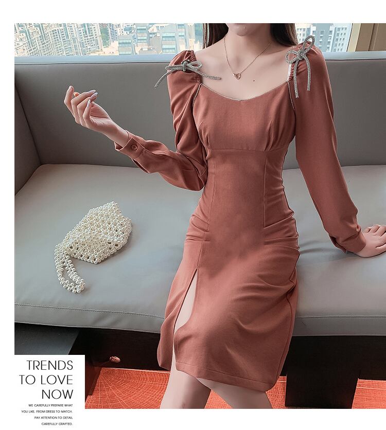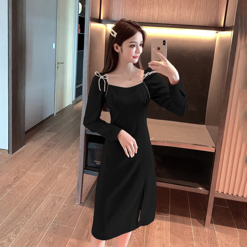 フランスのレトロなウエスト、薄く、軽く、豪華で、軽く調理されたスタイル、スクエアカラー、長袖、長袖のドレスの女性の秋と冬 ロング オータム 秋物 ウィンター 冬物 スクウェア yingd26552397318