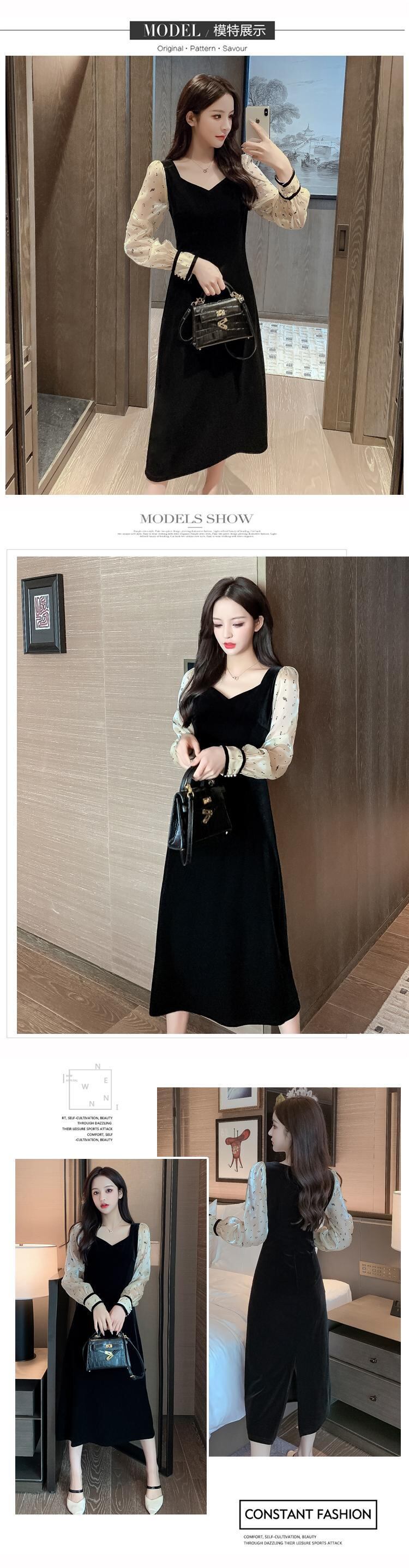 フレンチレトロヘップバーンスタイルロングスカート女性秋冬気質ライトラグジュアリーレディースセクシースプリットベルベットドレス女性秋冬 オータム 秋物 ウィンター 冬物 yingd29524412619
