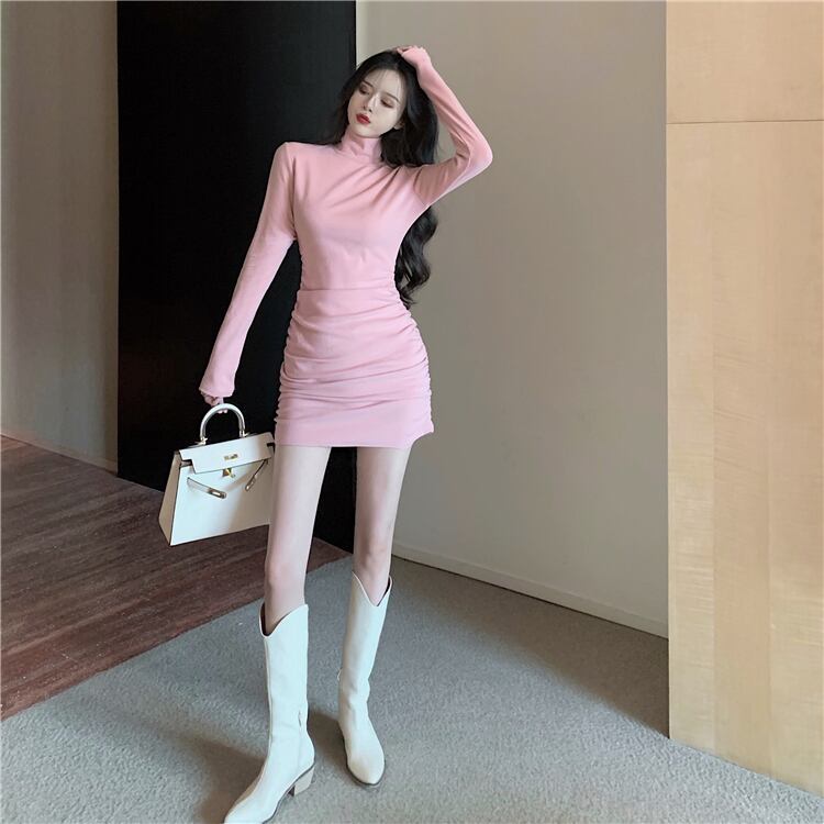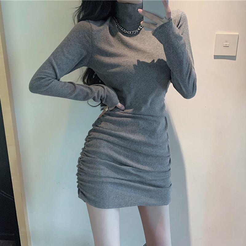 気質、フェミニン、タイトフィットのお尻のショートスカート、スリムで薄い、ウエスタンスタイル、軽く調理されたスタイル、ベースドレス、女性の秋と冬 オータム 秋物 ウィンター 冬物 yingd47656605725