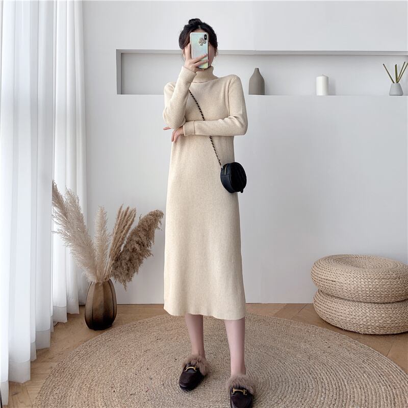 コート、ウィンタースカート、ロングセータースカート、ニーウエスト、細身、ハイネック、厚手のインナーニットワンピース、秋冬女性 オータム 秋物 冬物 yingd88067818258