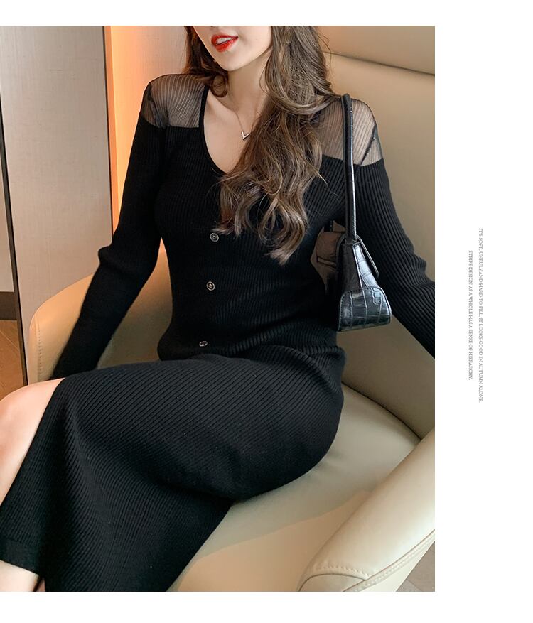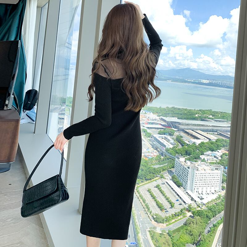 フレンチレトロロングオーバーザニーセータードレス女性秋冬気質フェミニンライトラグジュアリーレディーススリムニットドレス オータム 秋物 ウィンター 冬物 yingd63415007841