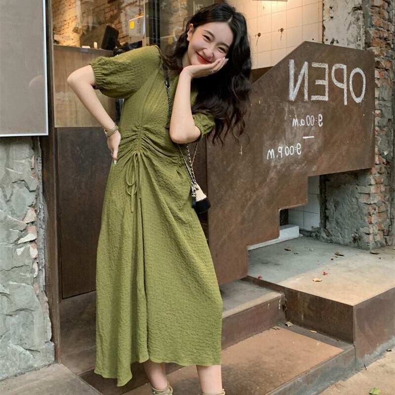 フランスのレトロシックなデザインロングドレスハイセンス女神ファン巾着ウエストティーブレイク初恋ドレス女性夏 サマー 夏物 yingd21155169385