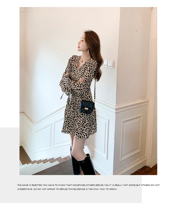 2021年春の新しい女性のフランスのレトロな巾着デザインセクシーなVネックヒョウ柄シフォン花柄ドレス スプリング 春物 yingd75757101985
