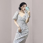 フランスのレトロなコールドスタイルの婦人服、ハイエンドの軽い贅沢、有名人の女性と姉、軽く調理されたスタイル、ヒップウェーブドットドレス、女性の夏 サマー 夏物 yingd53611318665
