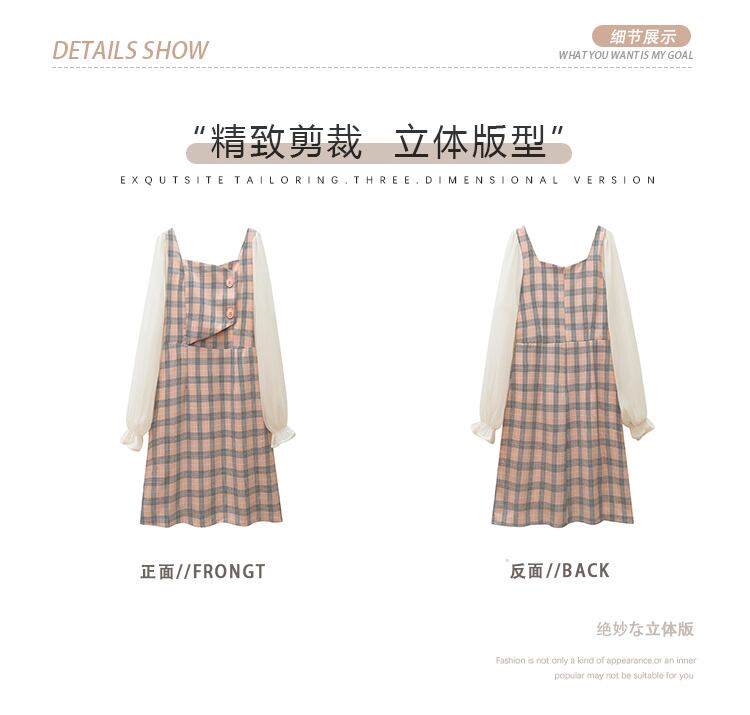 2021年秋、新しい女性のフレンチレトロウエストウエストは薄く、高品質のシフォンステッチチェック柄ドレスでした オータム 秋物 yingd48963674304