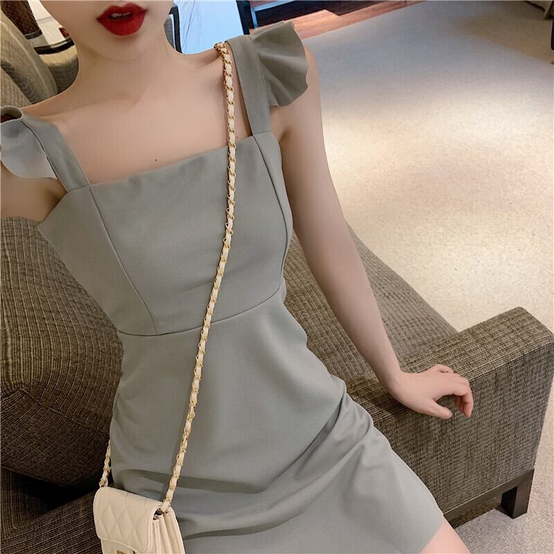 2020年夏の新しいフレンチレトロセクシーホルタードレス女性気質ウエストスリミングフリルショートスカート サマー 夏物 yingd54549502353