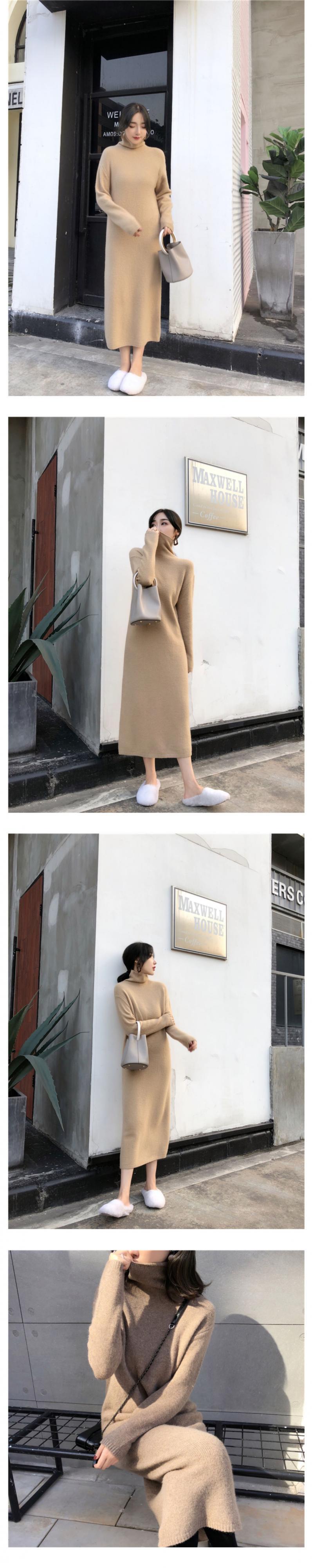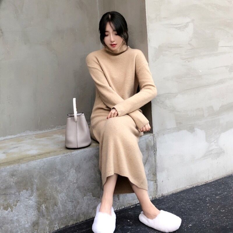 フランスのレトロなタートルネックのセータースカートの女性の秋と冬のロングスタイルの膝上怠惰な風ルーズで薄い長袖のニットドレス オータム 秋物 ウィンター 冬物 yingd11912772