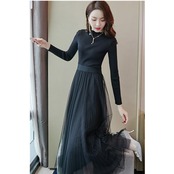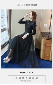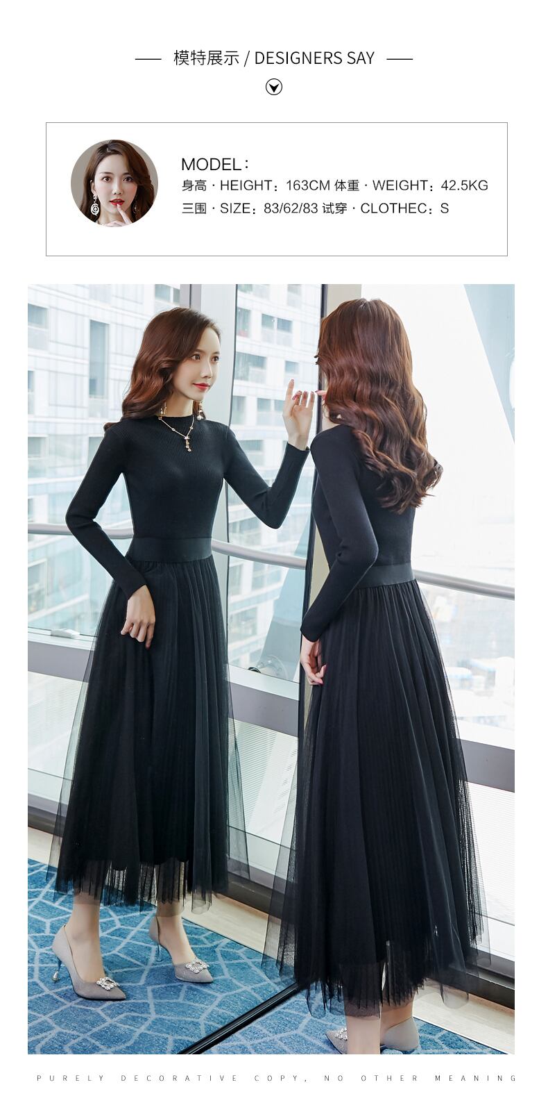 フランスのレトロなニッチな膝上ロングスカートのウエストは細く、気質は軽く、成熟した風メッシュステッチニットドレス女性の秋 オータム 秋物 yingd56345669016